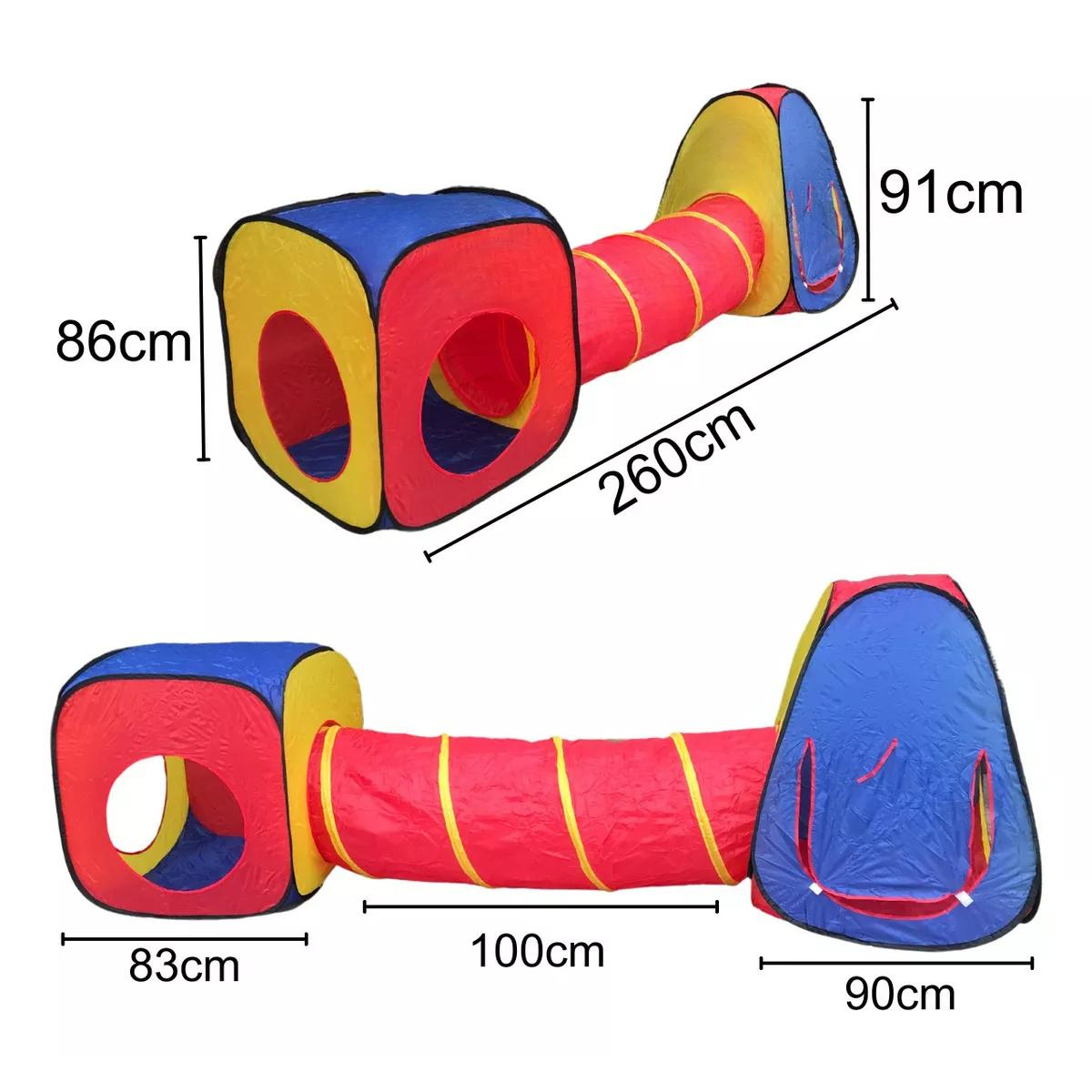 - Túnel de aventuras: Un túnel conecta la carpa, agregando un elemento emocionante y estimulante para que los pequeños exploren, desarrollen sus habilidades motoras para que se diviertan a lo grande.